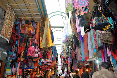 | Textiles for sale in the Nachalat Benyamin Arts & Crafts Fair. Photo by Melanie Miller-Pusateri. |